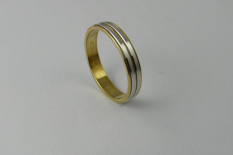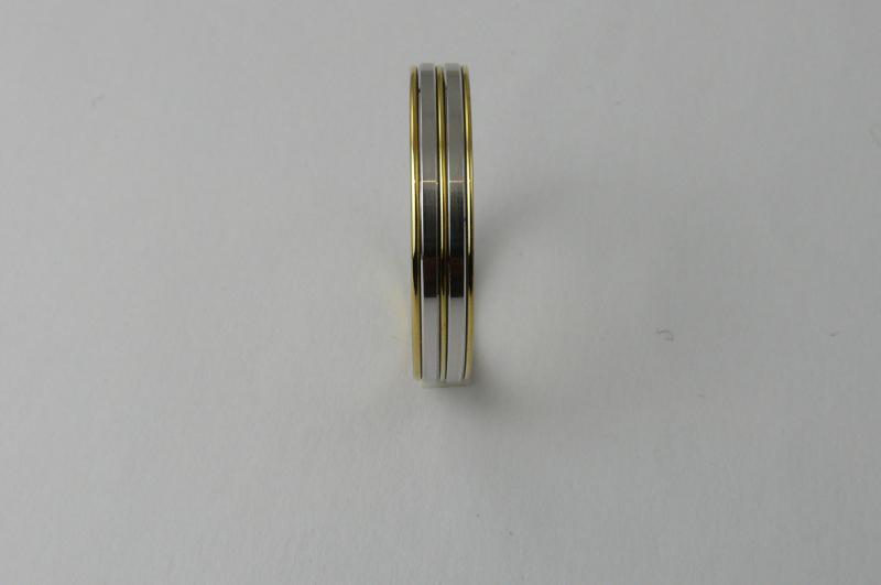 Alliance or blanc paladié , 3 fins liserets or jaune sur le pourtour