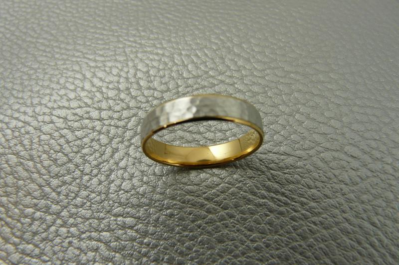 Alliance bicolore or 750/1000 ème 3.63 gr Largeur 4.5 mm Partie centrale martelée