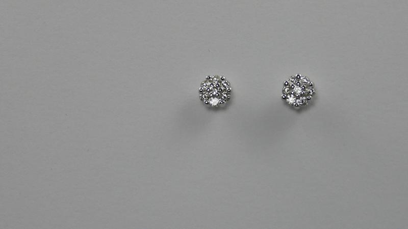 Boutons d'oreilles or blanc 750/1000ème - 18 carats - 2.07 grammes sertis de plusieurs diamants d'un poids total de 0.36 carat qualité GVS2 montés sur alpas